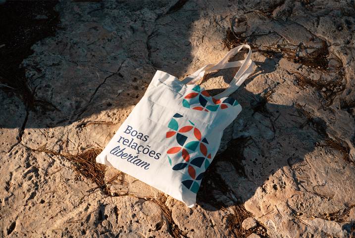 O símbolo criado para a marca é cheio de simbolismos. A forma externa representa um balão de fala (diálogo), e ela é constituída de quatro elementos (troca e autenticidade) dos quais um está voltado para fora (liberdade). O nome que, junto com o símbolo, compões o logo, combina letras serifadas com cursivas equilibrando potência e feminilidade.
